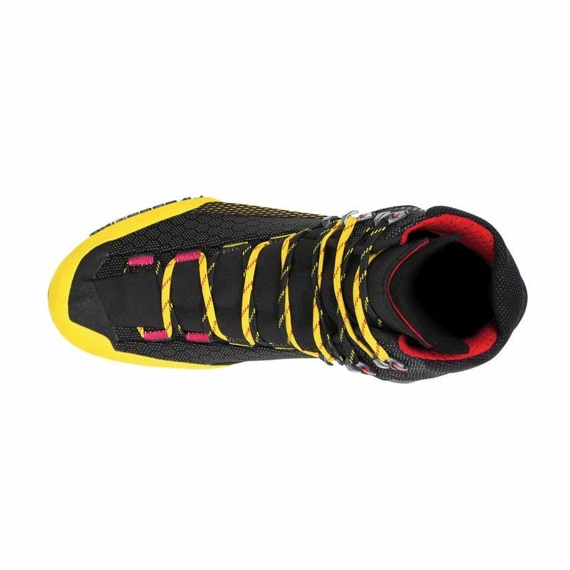 - Laçage avec crochets dans la partie supérieure et œillets dans la partie inférieure et guêtre anti-frottement inférieure pour un usage avec des crampons