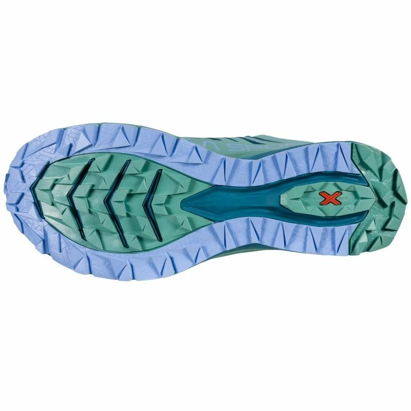 Les Jackal sont des chaussures de trail pour femme conçues par la marque La Sportiva, idéales pour vos courses en montagne off-road sur de très longues distances ou vos séances d’entraînement prolongées sur moyenne distance. Avec leur amorti exceptionnel garanti par la technologie innovante à haut retour d’énergie Infinitoo™, les Jackal favorisent le confort du pied sur de longues distances. Aussi, les Jackal proposent une coupe confortable et ample conçue pour les ultra-marathons, une languette élastique enveloppante et souple pour une liberté de mouvement maximale, et une construction à soufflet pour protéger vos pieds contre les pierres ou la boue. Le laçage des Jackal incorpore directement les boucles dans les panneaux latéraux de l’empeigne, facilitant ainsi l’adaptation du volume de vos pieds pendant vos longues courses, aux cours desquelles votre pied a tendance à gonfler. Par ailleurs, le mesh des Jackal favorise la ventilation et le confort climatique, peu importe les kilomètres parcourus. Enfin, la semelle extérieure des Jackal en FriXion Red avec crampons offre une adhérence et une durabilité optimales, sur tous sentiers. Un concentré de technologie inspiré de ceux qui courent à la recherche de leurs propres limites, voire à la recherche d’eux-mêmes.