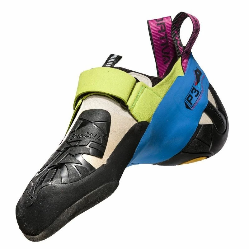 Les Skwama de La Sportiva sont des chaussons d’escalade pour femme, conçus pour une utilisation sur roche, en salle, sur parois abruptes ou sur dalles. Pour les grimpeurs qui ne font pas de compromis, ces chaussons sont d’une haute technicité. Très flexibles grâce à la nouvelle construction de la semelle, ces chaussons hyper-sensibles et enveloppants sont en mesure de soutenir les grimpeurs dans leurs mouvements les plus techniques en surplomb. L’empeigne en daim et microfibre a une construction qui permet un enveloppement idéal du pied sans points rigides ou vides. En torsion, bénéficiez d’une stabilité maximale grâce à la coque innovante brevetée S-Heel™ qui maintient la stabilité en accentuant les performances et l’adaptabilité des lors des talonnages. La Skwama™ en caoutchouc de protection ultra-adhérente sur la pointe protège des abrasions et forme une surface grippante pour crochetage de pointe. La semelle Vibram XS-Grip2 fournit une adhérence maximale à tout type de paroi. L’escalade change de peau !