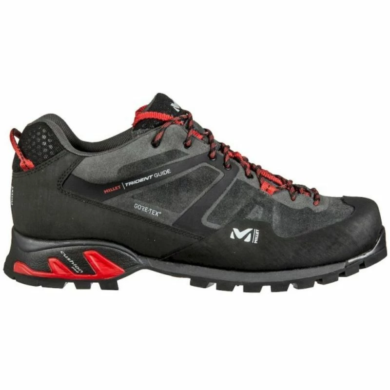 Les Trident Guide Gtx®, de la marque Millet, sont des chaussures de randonnée fiables et robustes, idéales pour vos randonnées estivales et petits treks. En Gore-Tex®, les Super Trident Gtx sont imperméables, respirantes et coupe-vent. Elles vous protègeront efficacement en cas de pluie ou si vous deviez traverser une petite rivière. La semelle intemédiaire en EVA double densité permet de stabiliser votre talon et offre un excellent amorti au pied. Dotées d’une semelle extérieure en Vibram®, vos pieds sont protégés du sol, que vous soyez sur terrain rocheux ou pente herbeuse. Cette semelle garantit également une excellente accroche sur terrains humides. Idéales pour les marches d’approche et vos activités en montagne !