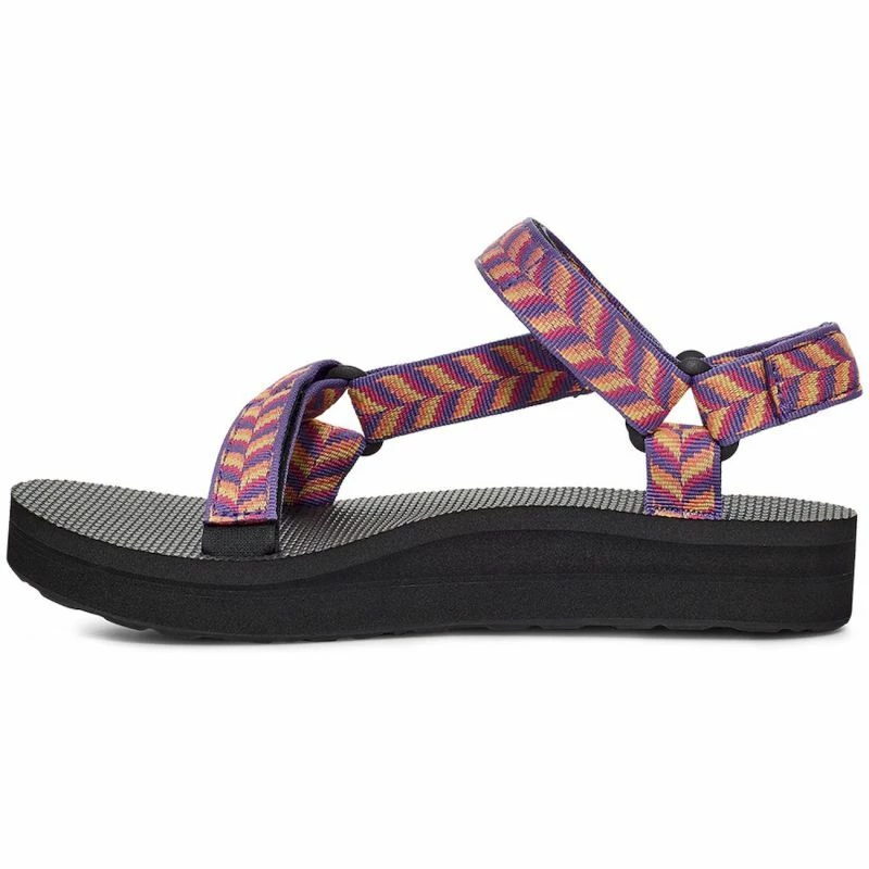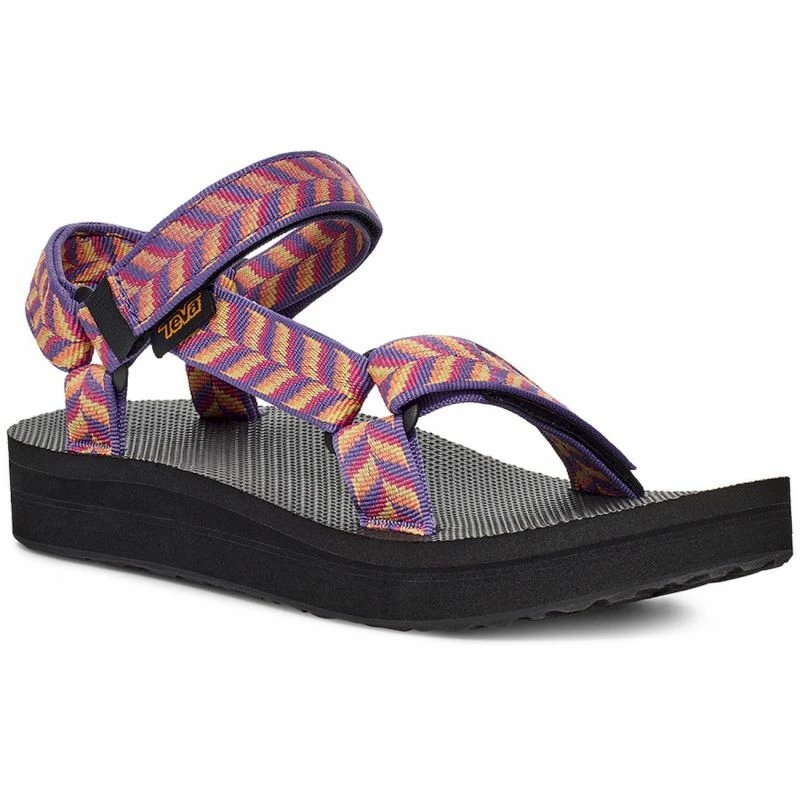 La sandale pour femme, Midform Universal de chez Teva, est taillée pour la marche ou randonnée par temps chaud. La patte auto agrippante combinée à la semelle EVA garantissent un maintien parfait ainsi qu’une facilité à enlever et retirer la sandale. De plus, la semelle extérieure en caoutchouc de la Midform Universal vous garantira une accroche en toutes circonstances.