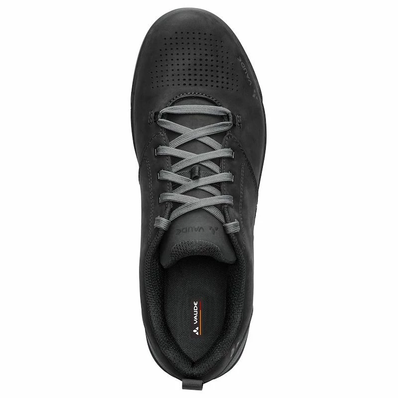 Les chaussures de VTT, homme, de la marque Vaude, sont spécialement faites pour une pratique du VTT quotidienne. Ces chaussures pour pédale plate sont fabriquées en cuir de nubuk huilé de Terracare, ce qui leur procurent une excellente solidité, une bonne résistance aux intempéries, le tout dans un look soigné. La semelle intérieure Ortholite® de la AM Moab, ainsi que la semelle intermédiaire en mousse EVA garantissent un excellent confort. Cette chaussure Vaude, dispose d’un renfort au niveau des orteils et du talon, ce qui protège le pied, des pierres et des coups. La semelle intérieure comporte une mousse PU plus dure au niveau de la pédale, pour une transmission de force optimale, sur la pédale. En action, votre chaussure sera parfaitement accrochée à la pédale grâce au profil hexagonal étagé au niveau de la pédale combiné au mélange de caoutchouc souple SUPtraction® Flat. De plus les hexagones situés au niveau de la pédale vous offre une excellente accroche au terrain, pour vos passages difficiles à pieds.