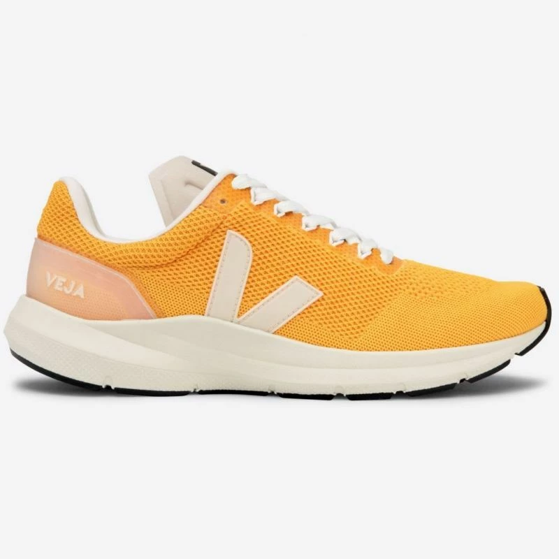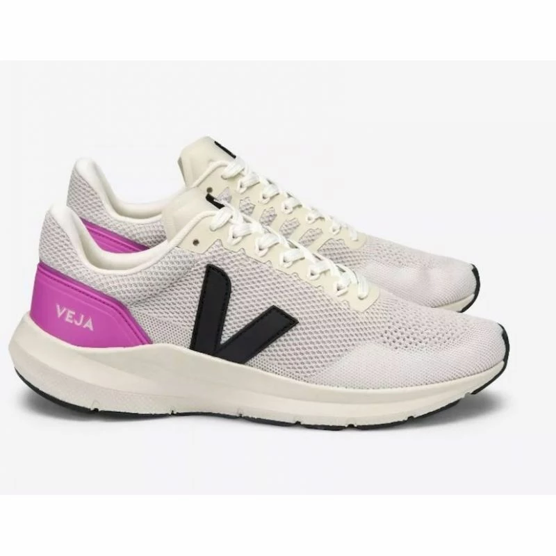 Les Marlin sont des chaussures de running pour femme de la marque Veja, la célèbre marque de chaussures écologiques. Conçues pour répondre aux attentes des coureuses exigeantes, elles seront particulièrement adaptées aux coureuses en quête de performances. Aussi légères que confortables, les Marlin sont des chaussures de running pour femme polyvalentes, à la construction minimaliste et pointue. Les insertions L-Foam à l’avant du pied et au talon permettent une absorption des chocs pendant la course pour un amorti toujours plus efficace. La tige en tricot fin offre aux Marlin une grande respirabilité, afin d’évacuer efficacement l’humidité pendant l’effort. Idéales pour vos running urbains ou vos sorties en montagne, elles bénéficient d’une semelle extérieure à rainures flexibles multi-directionnelles qui améliore votre jeu de jambes et vous apporte une foulée plus naturelle. De plus, la construction de la languette du chausson s’ajustera parfaitement à votre pied pour un confort optimal. Composées à 62 % de produits bio sourcés et recyclés, les Marlin sont fabriquées au Brésil, au plus proche des matières premières, et dans une usine qui respecte les droits des travailleurs.